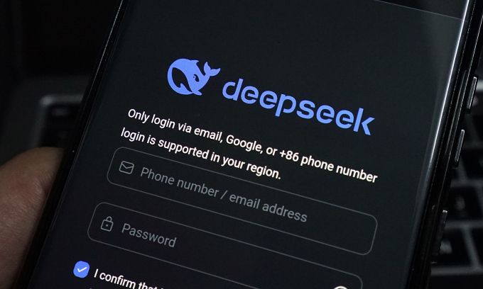 Giao diện đăng nhập DeepSeek trên một chiếc smartphone. Ảnh: Bảo Lâm