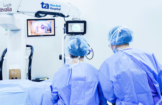 Bác sĩ phẫu thuật Phaco thay thủy tinh thể nhân tạo cho ông Phú. Ảnh: Bệnh viện Đa khoa Tâm Anh