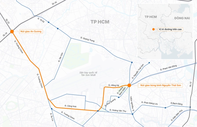 TP HCM- Đường trên cao dài khoảng 11 km từ An Sương đến khu vực sân bay Tân Sơn Nhất được đề xuất đầu tư kỳ vọng giảm ùn tắc cho trục Trường Chinh - Cộng Hòa.