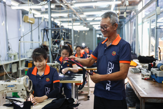 Công nhân làm việc tại công ty may mặc,sản xuất phụ kiện thể thao Polaris,quận Tân Phú,tháng 1/2025. Ảnh: Quỳnh Trần