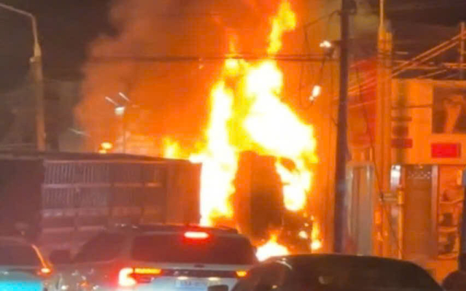 Xe container bốc cháy sau va chạm,bé trai 6 tuổi bỏng nặng