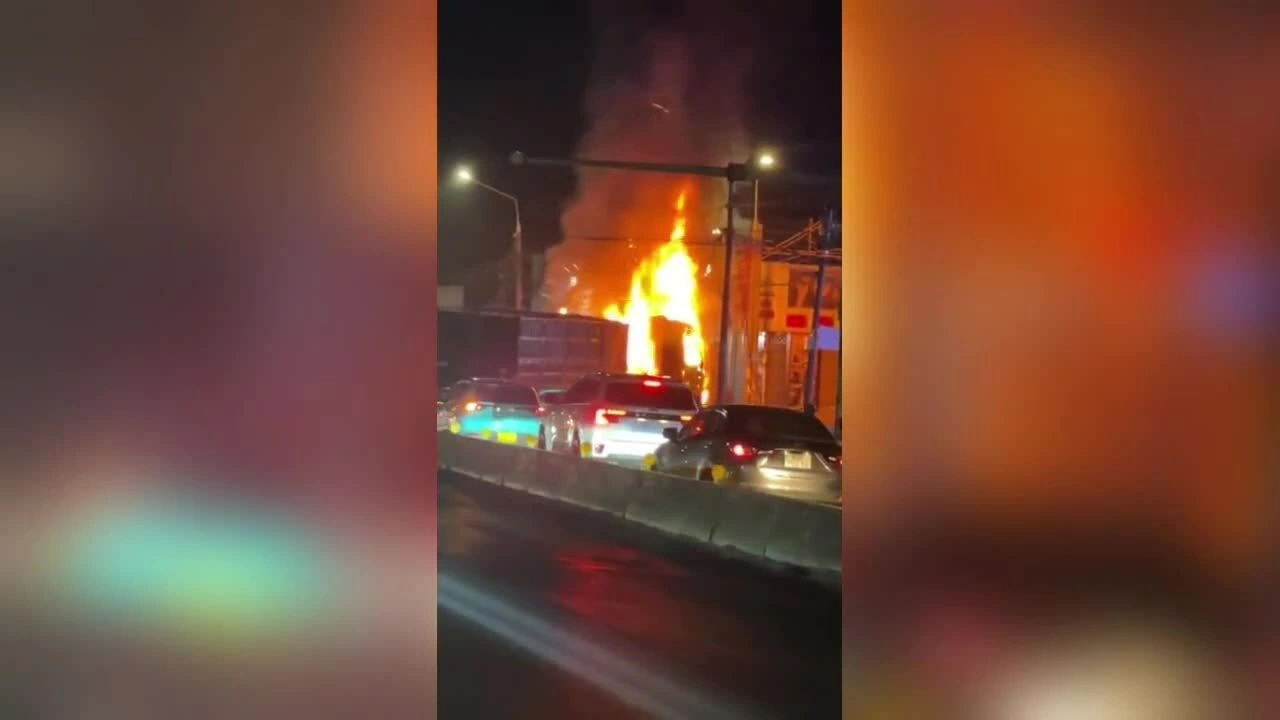 Hiện trường cháy xe container trên quốc lộ 1. Video: Người dân cung cấp