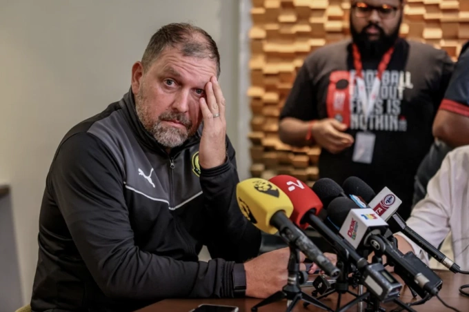HLV đội tuyển Malaysia Peter Cklamovski trả lời họp báo ở sân Bukit Jalil tại Kuala Lumpur,Malaysia vào ngày 23/3/2026. Ảnh: Bernama