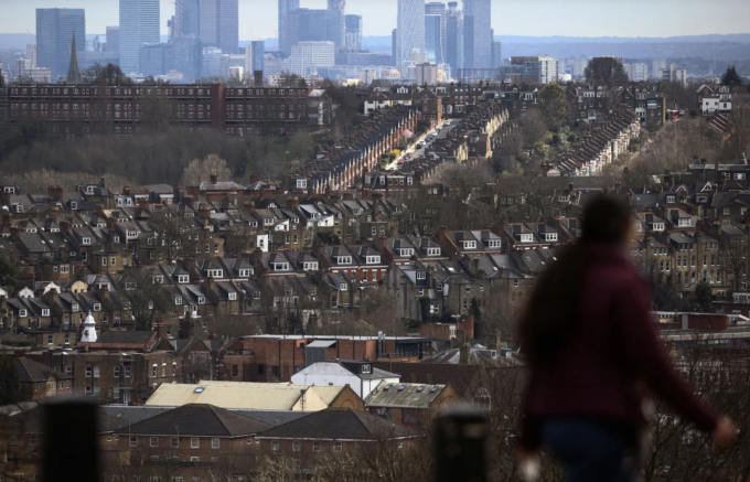 Những ngôi nhà ở Canary Wharf,TP London,Anh,tháng 3/2023. Ảnh: CNN